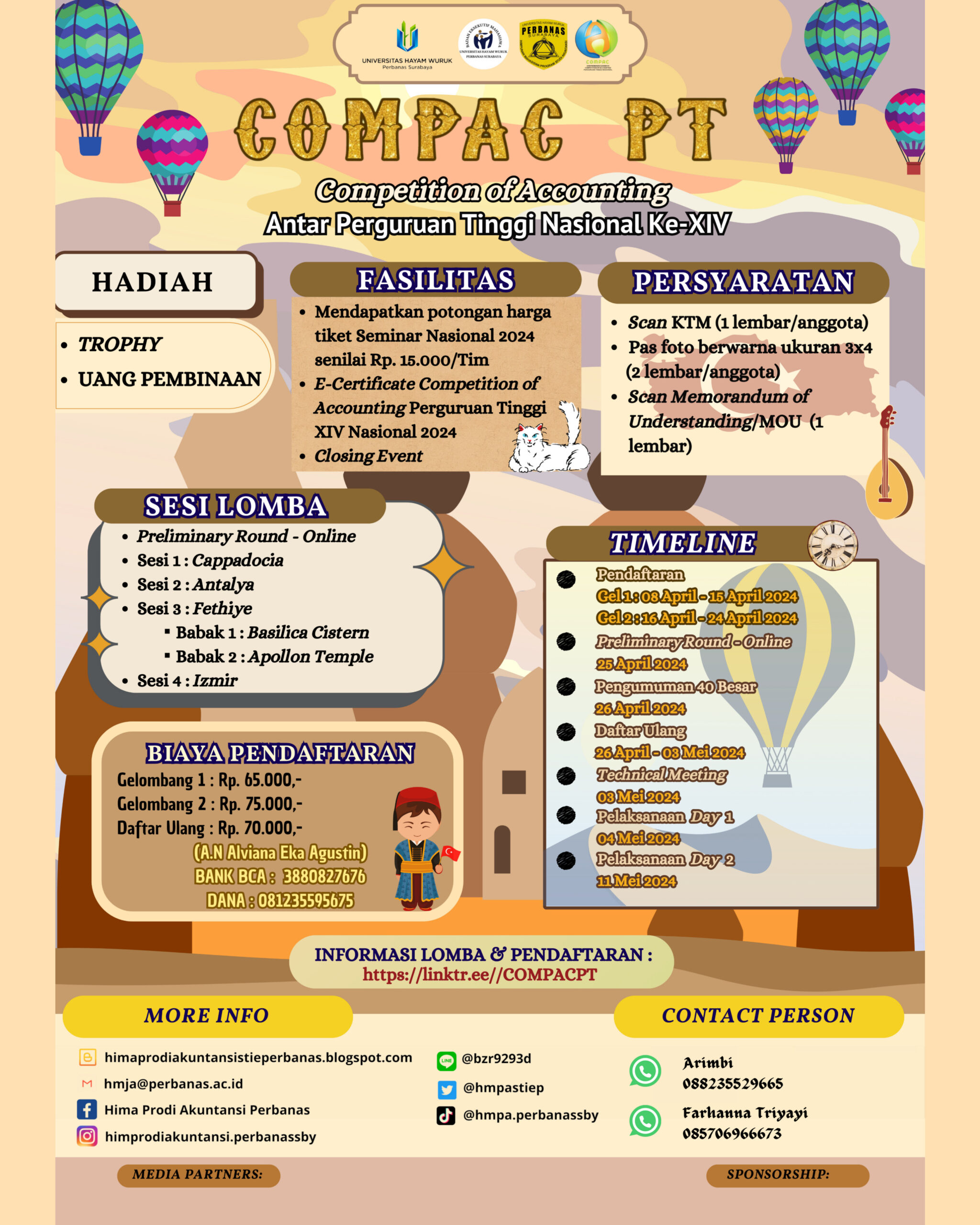 Ini kesempatan bagi kalian untuk menunjukkan potensi yang kalian punya dan meningkatkan kemampuan kalian khususnya di bidang akuntansi. Jadi jangan ragu lagi dan segera daftarkan tim kalian ya☺️